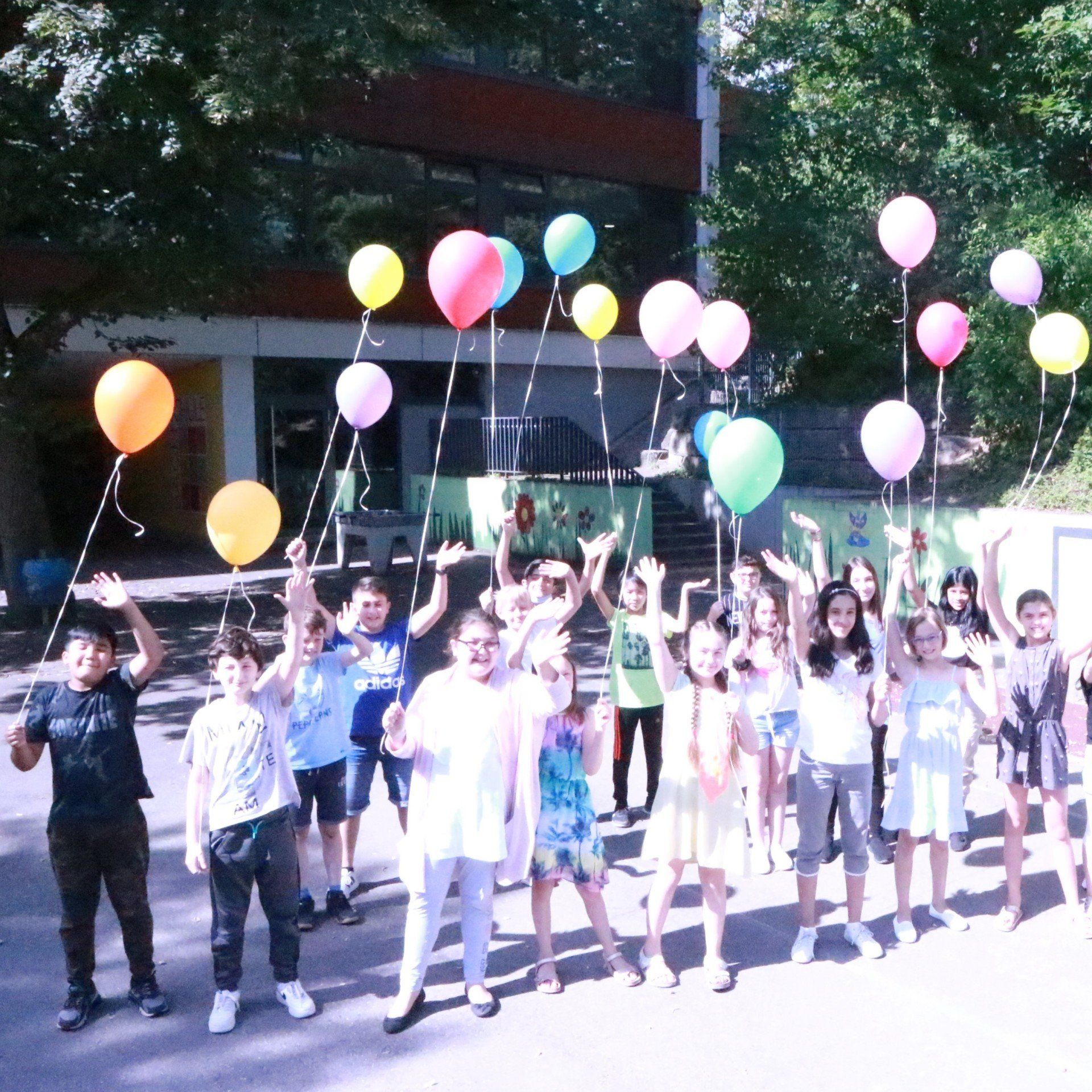 Ich und ein Mädchen haben jemanden interviewt. Zum Schluss hatten wir 105 Punkte. Jedes Kind konnte sich eine Überraschung nehmen. Dann fuhren wir mit der U-Bahn wieder in die Schule.